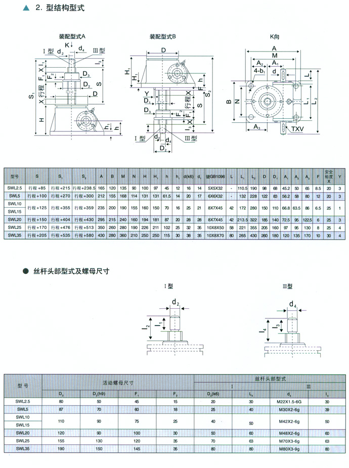 2型结构型式的丝杆头部分为Ⅰ型(圆柱型)、Ⅲ型(螺纹型)二种型式。